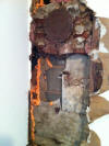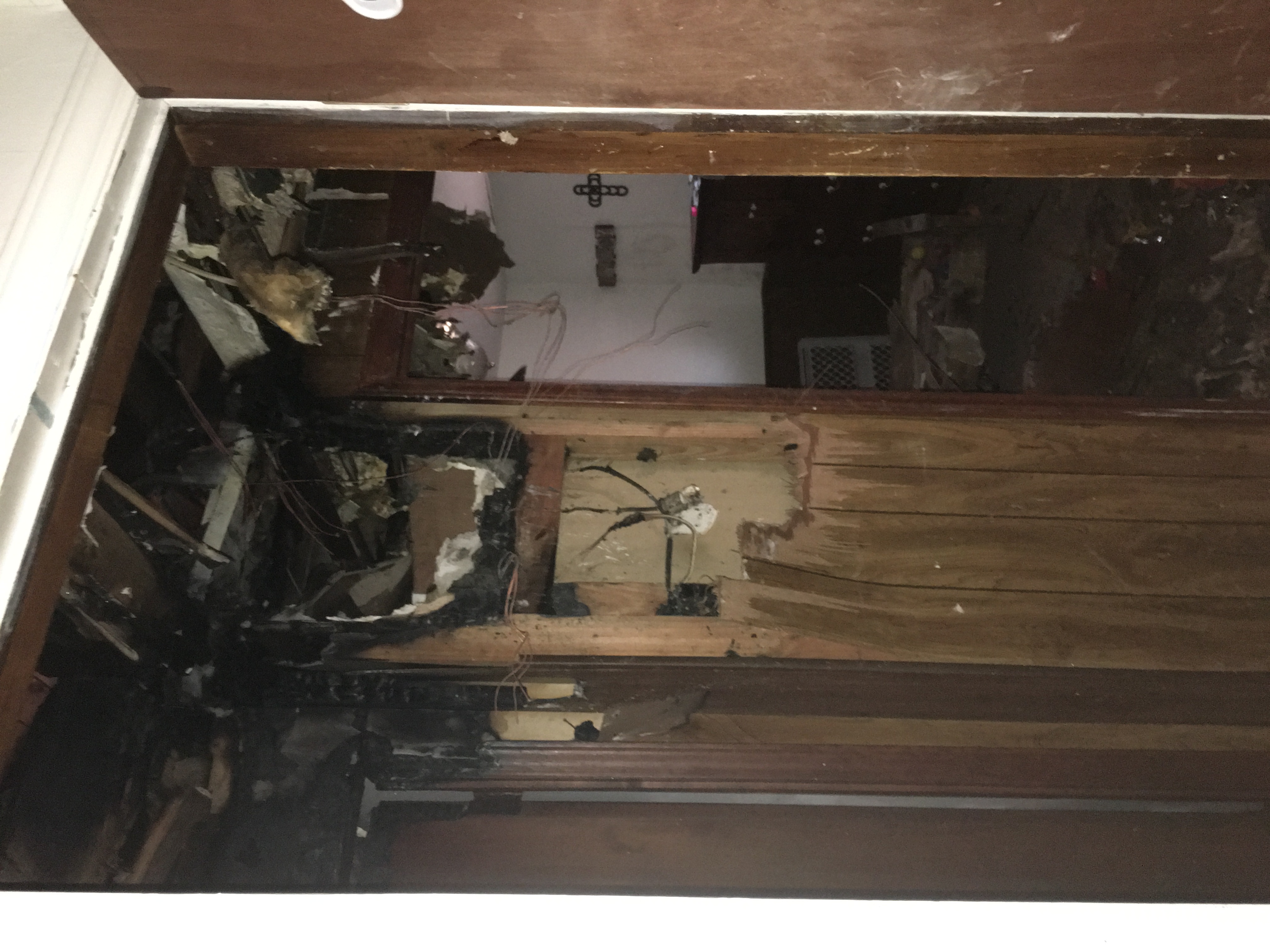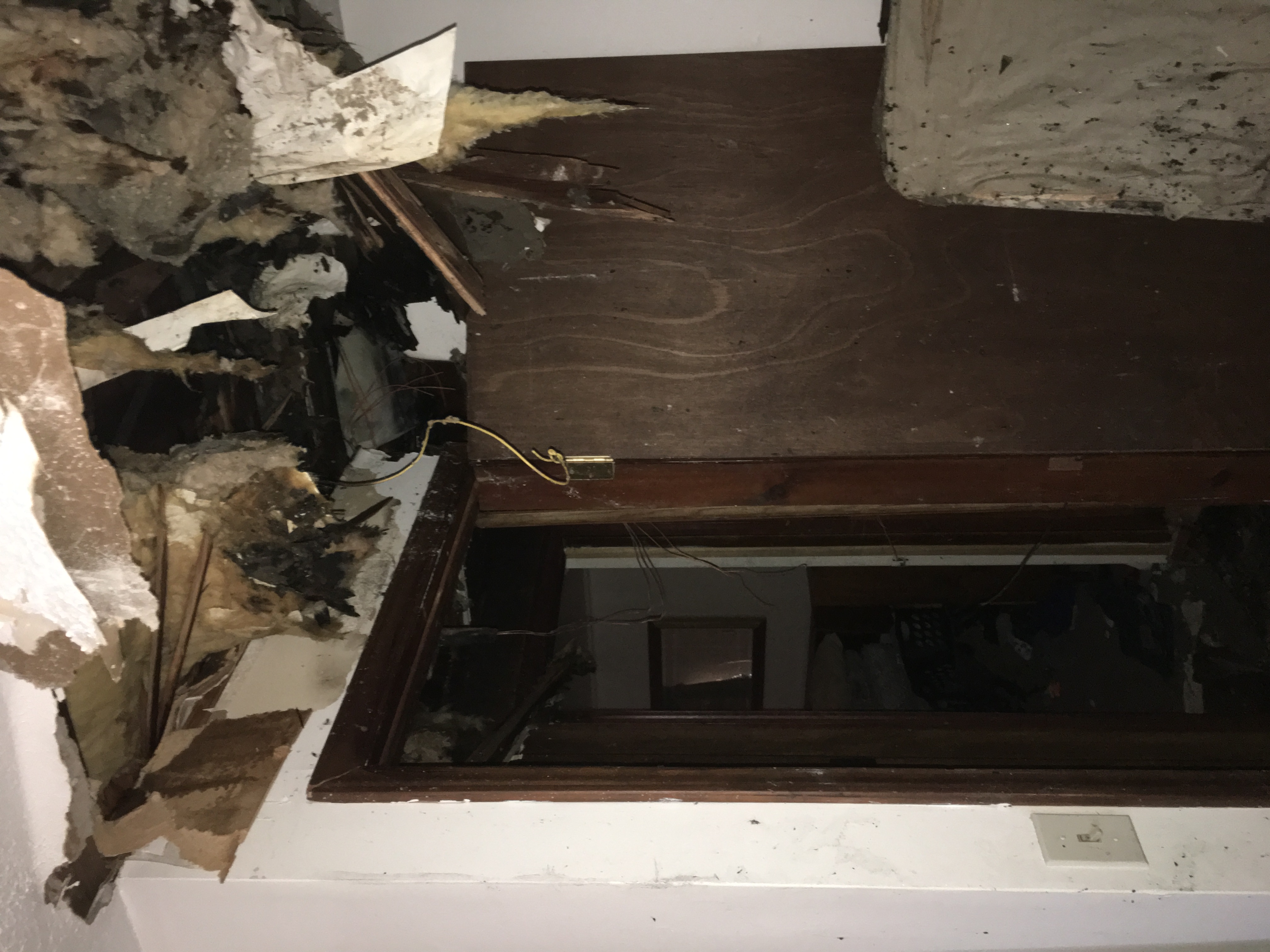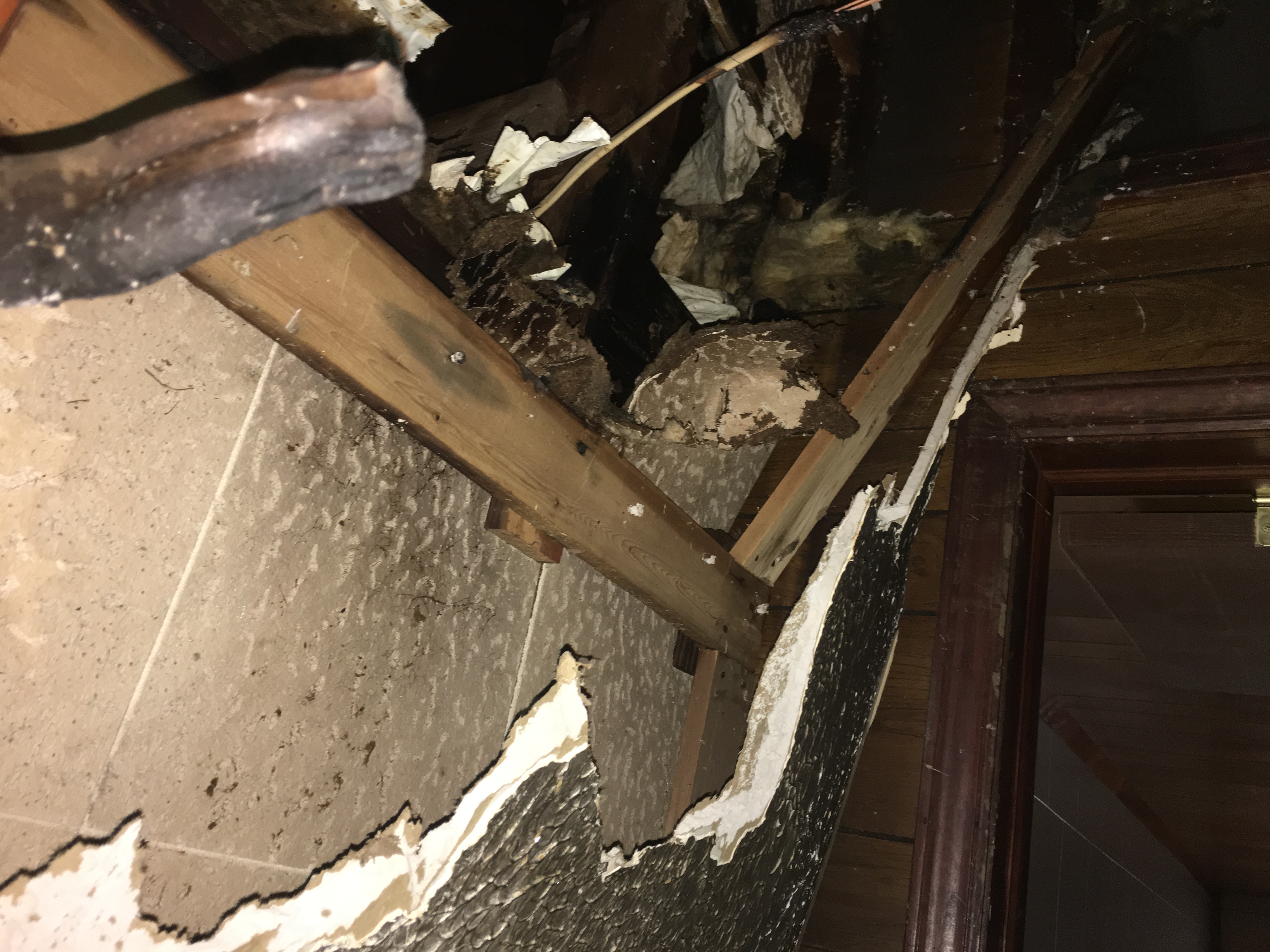 Back bedroom has wet wall damage... old furnace / chimney in the wall was leaking (see daylight?)...